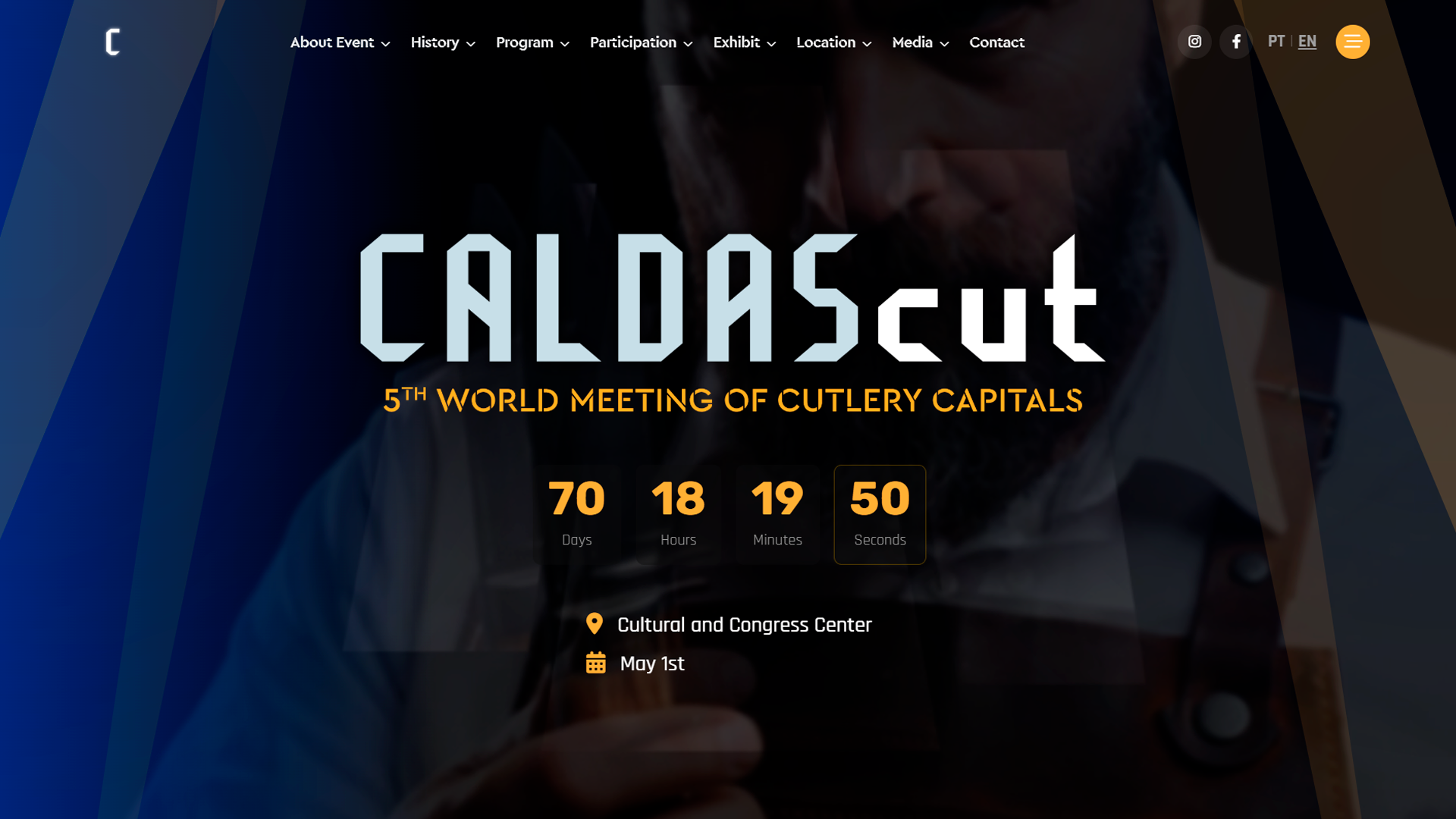 CutelariaPlataforma online para a Caldas Cut. Um design moderno e funcional que destaca o evento, permitindo conhecer o espaço e os profissionais.